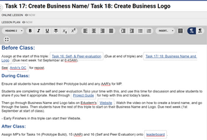 Structure for teachers. Before we start every project, we now do a lot of planning to break down the project based on students’ expected progress, map that across lessons, and then break down exactly what should occur in each lesson for each teacher. The more granular you can make this, the better; we included lesson titles, dates, times, details/instructions, links to task worksheets, and what to post or assign in Google Classroom for students to access (see below). We had one teacher’s workspace as an ‘exemplar’ which other staff could access and repost to their class. This took a lot of planning time and stress off classroom teachers whose sole focus was now simply to follow a clear playbook in facilitating the program. Teachers have loved the clear instructions, structure, and ready-at-hand resources to be used each lesson.